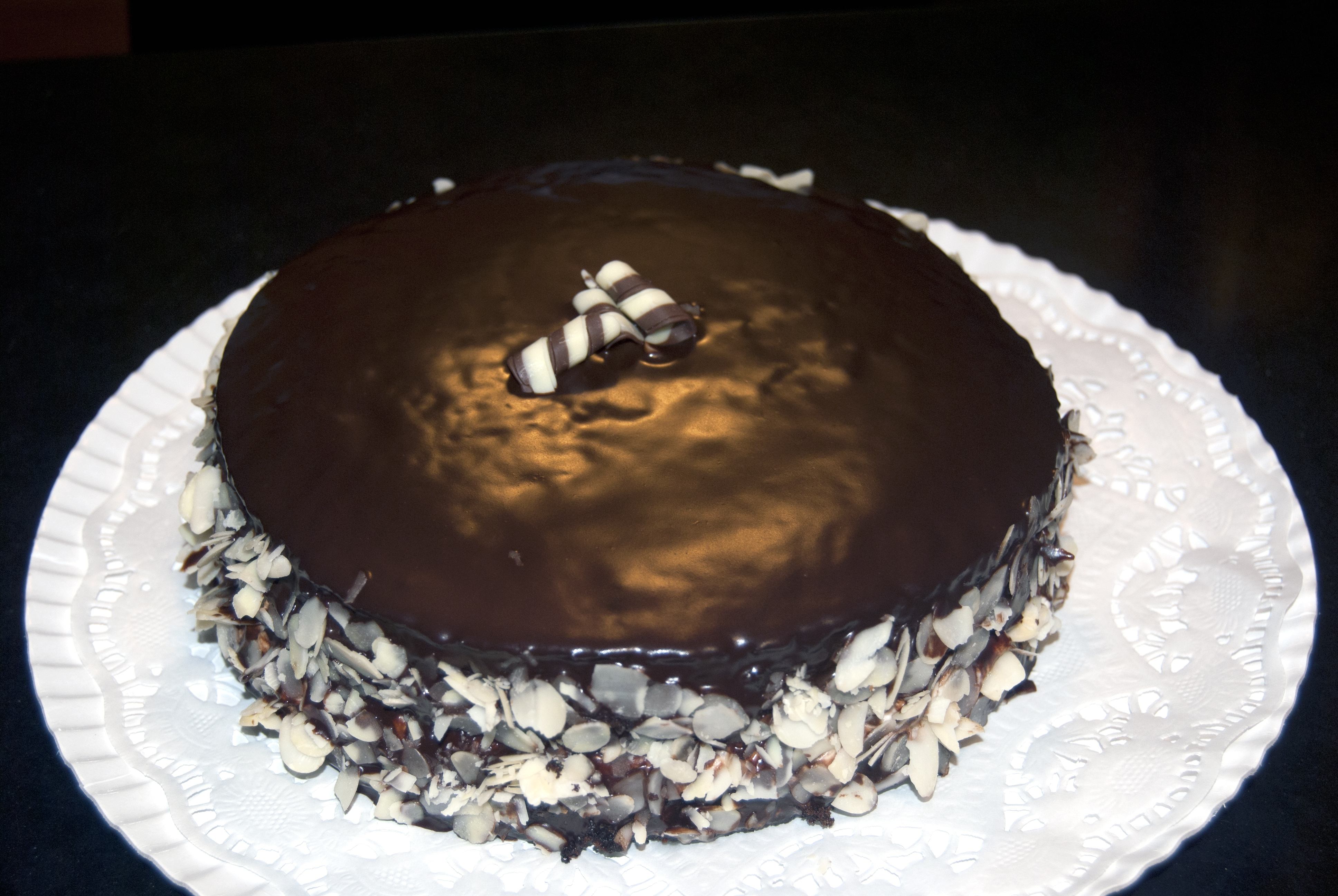 Cuando la cobertura de nata y chocolate esté templada, la volcamos sobre la tarta que habremos puesto sobre una rejilla y con un recipiente en el fondo para que recoja el chocolate sobrante. Dejamos escurrir y volvemos a cubrir de nuevo con otra capa de cobertura. Cuando ya no gotee el chocolate la colocamos en un plato y la dejamos enfriar en la nevera durante 2 horas como mínimo.