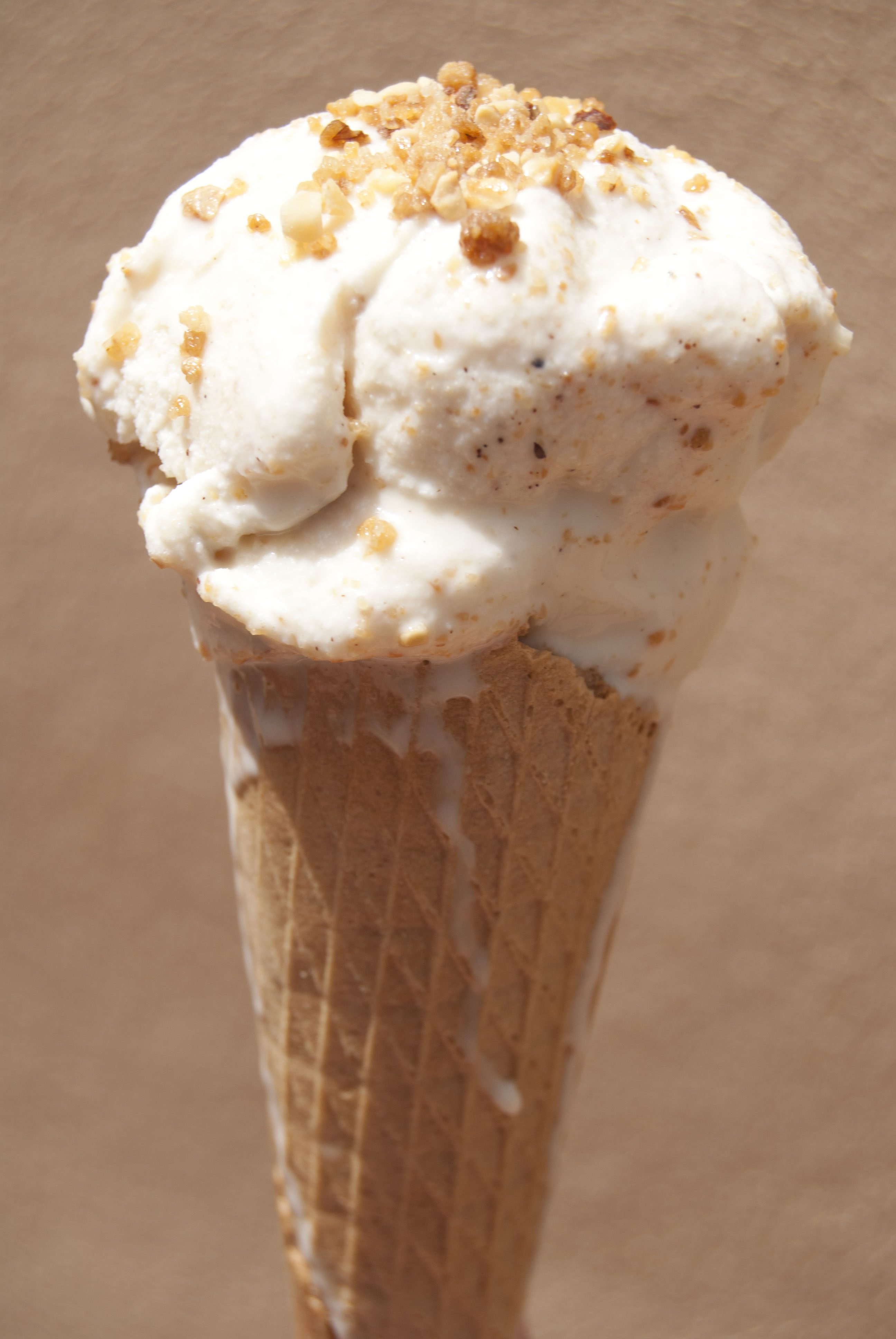 Servid vuestro helado de la forma que más os guste (en vasitos, en un cono de galleta,…) y añádele el topping que quieras (chocolate fundido, granillo de almendra, sirope de arce, …). Tu imaginación conseguirá personificar esta receta y convertirla en tu propio helado de almendra tostada.