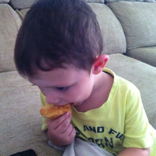 La primera tarea era encontrar al susodicho. Podría haber llamado a Sherlock Holmes y su queridísmo Watson pero como soy una chica 2.0 lo mejor era hacer pública la situación a través de las redes sociales. En 5 horas he recibido el aviso de un posible candidato de complexión pequeña, simpático y carismático que responde al nombre de Jaume y que su propia madre ha cazado en el momento justo en el que cometía el «delito». ¡Qué sería de mi cocina sin los comensales! Y más si es tu sobrino de 2 años que disfruta con una magdalena casera y tradicional. ¿Es para sonreír o no?