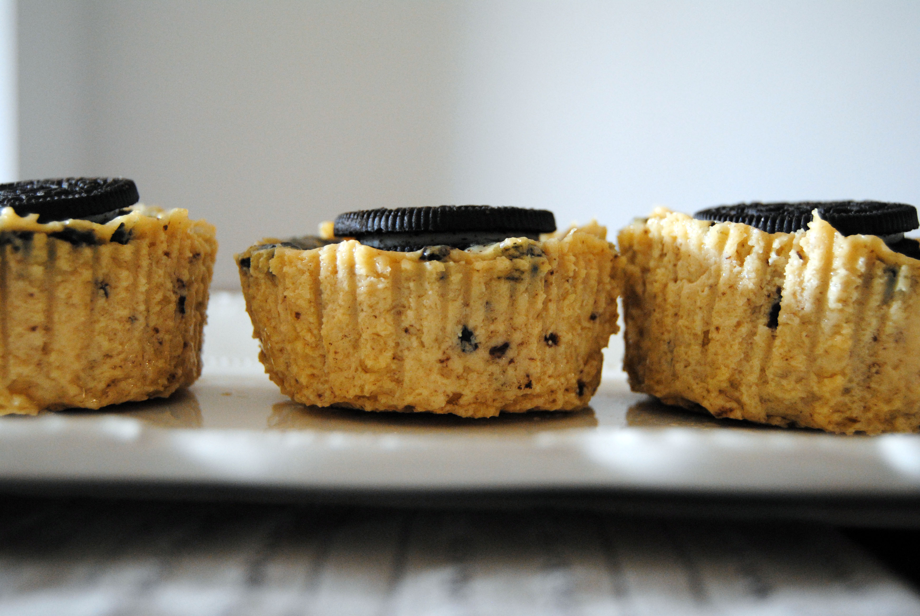 No sé si es por el calor pero he perdido algo el apetito por lo que intento hacer raciones pequeñas que me llaman más la atención. Por esta razón, pensé realizar una tarta de las míticas galletas pero de queso. La opción estaba elegida pero cuando la estaba realizando pensé que nada mejor que hacerlo en bodados individuales. No me equivoqué. La presencia de estas mini tartas es espectacular y el sabor queda intacto independientemente del tamaño que lo hagas. Opté por unos moldes de magdalenas o de cupcakes para que al desmoldarlas quedaran perfectas. Pero no os creáis que siempre salen las cosas así de bien. No. De hecho estamos acostumbrados a mostrar sólo los platos geniales pero aún recuerdo el primer gazpacho de esta temporada, no lo recuerdo por su sabor, más bien porque se derramó por toda la encimera, salpicando hasta el más recóndito rincón. Esta junto otras historias similares llenarán más de una entrada.