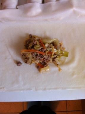 Continúa rellenando los rollitos uno a uno. Con la cantidad de relleno debería bastar para unos 16 rollitos como mínimo.