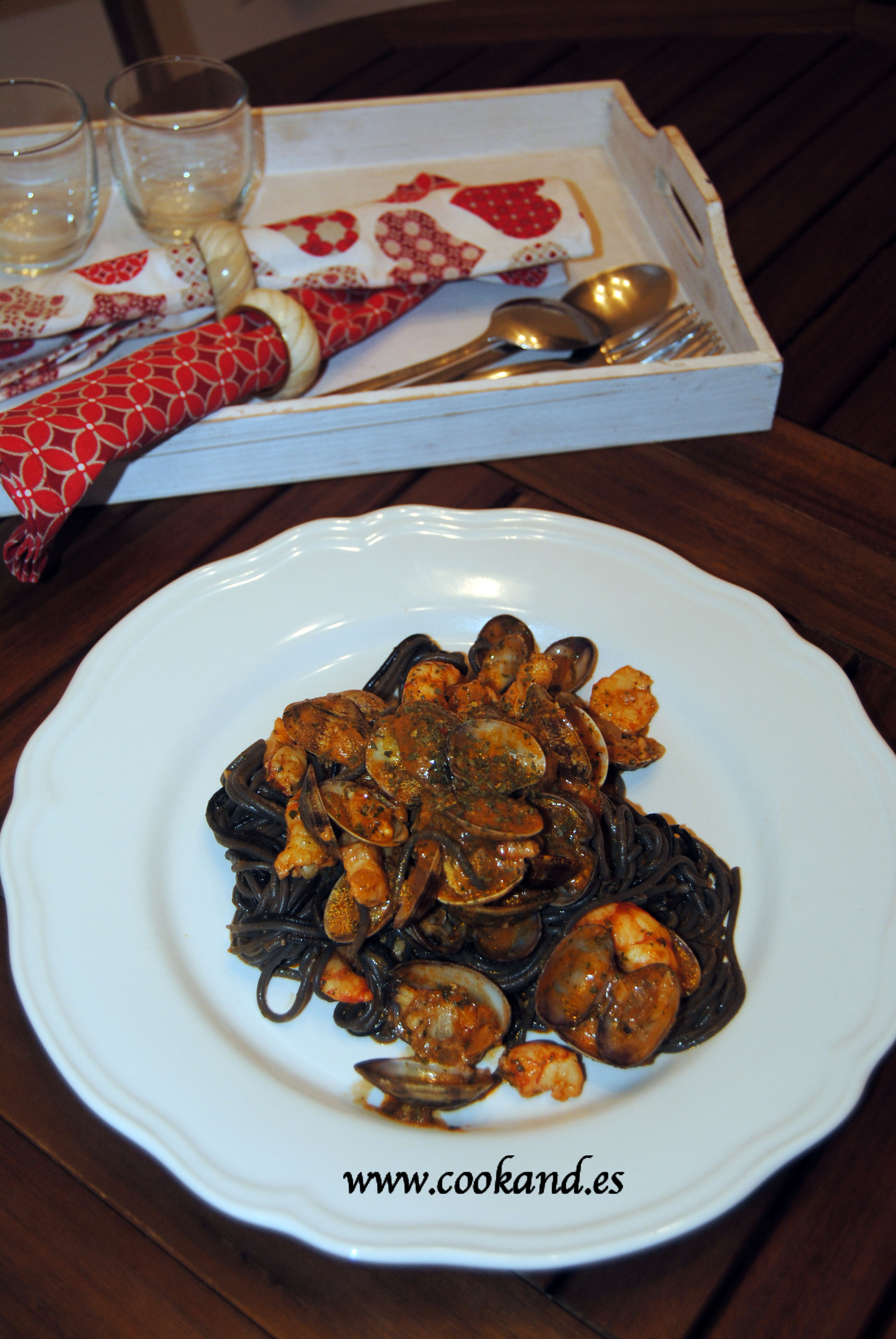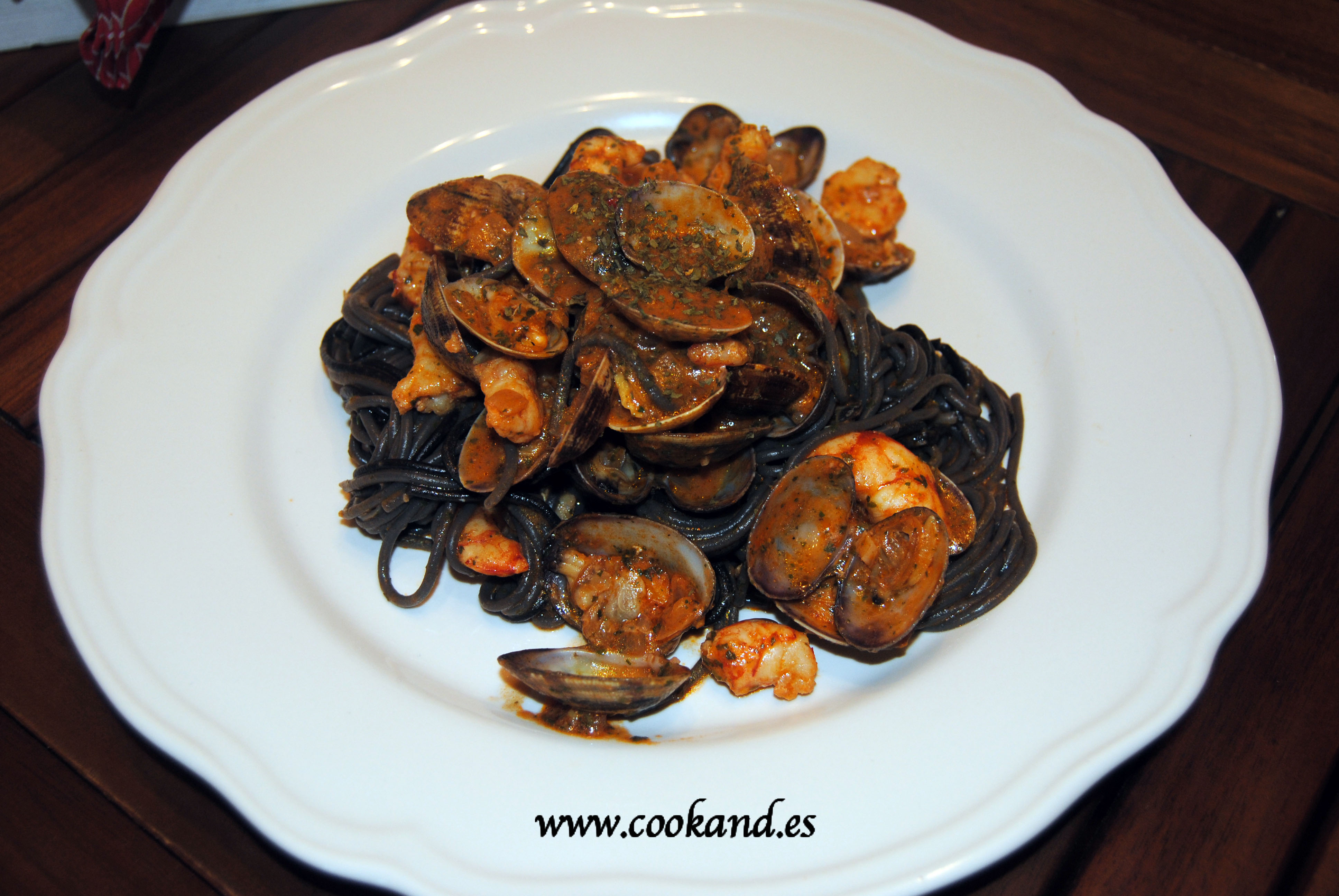 Escurrimos los spaghettis y los incorporamos a la salsa. Servimos bien caliente.