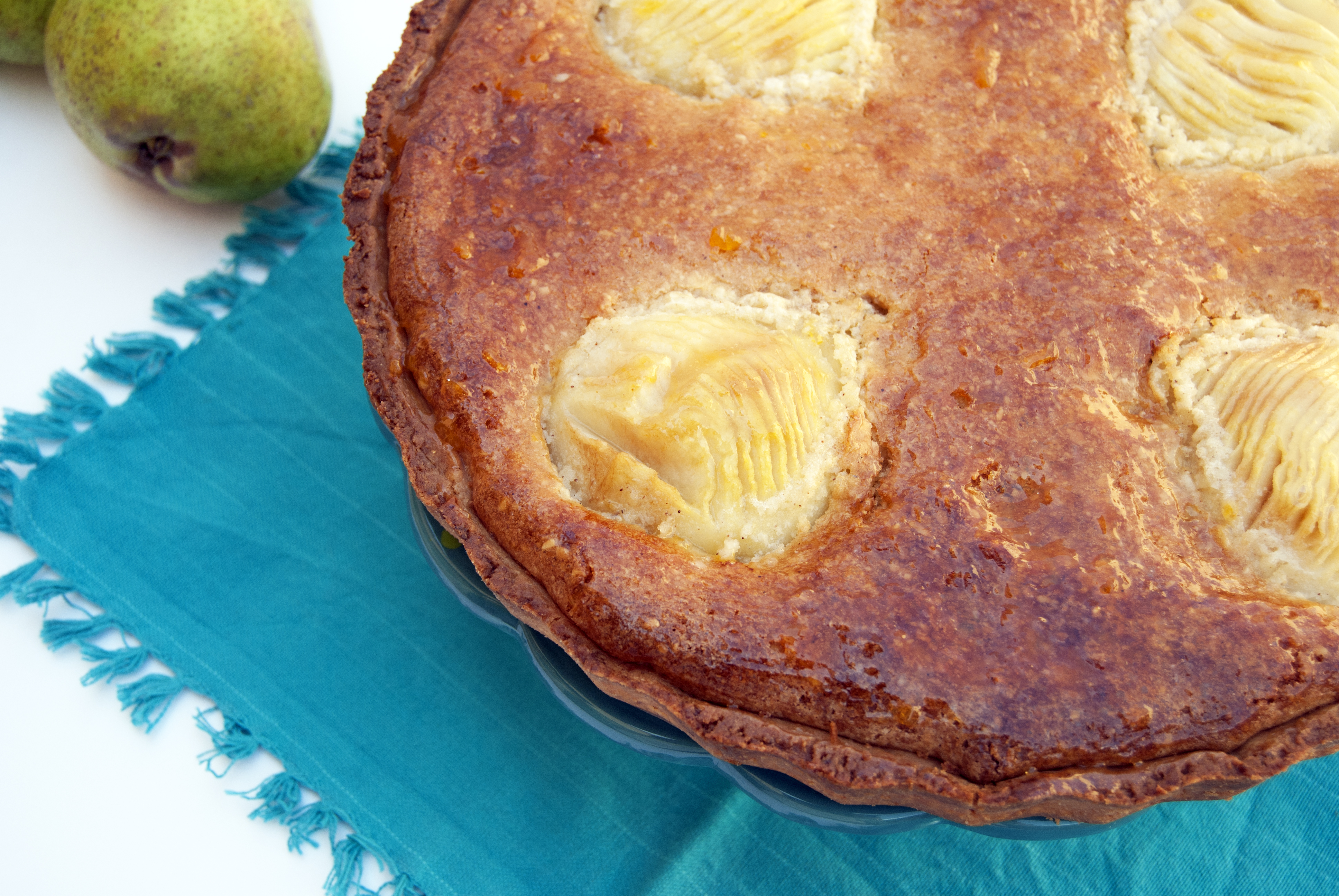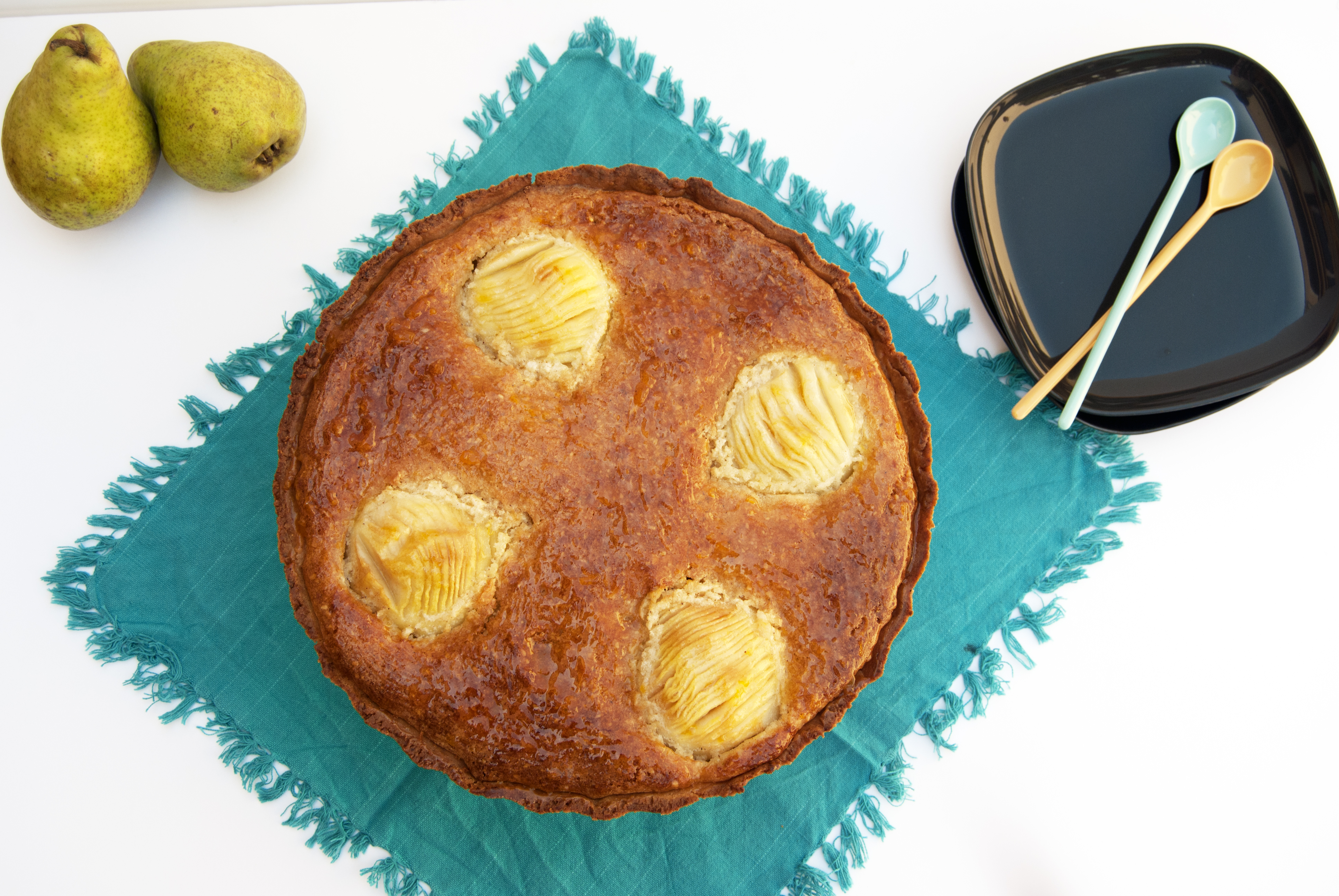 Hoy tenemos comida familiar como cada año así que llamé a todo el mundo para advertir que no trajeran postre. Ésa es tarea mía. Ya sabía qué quería hacer. Quería que mi producto estrella fuera la pera. Jugosa pero tersa, de las que no tienen excesiva agua y que al cocerse en el horno no perdiera, prácticamente, su tamaño. Por dentro quería una textura suave y delicada algo que los franceses saben hacer muy bien. Una crema de almendras es la mejor opción. Y por fuera, algo que fuera consistente y crujiente como una masa quebrada. Así nació la conocida tarta bourdaloue.