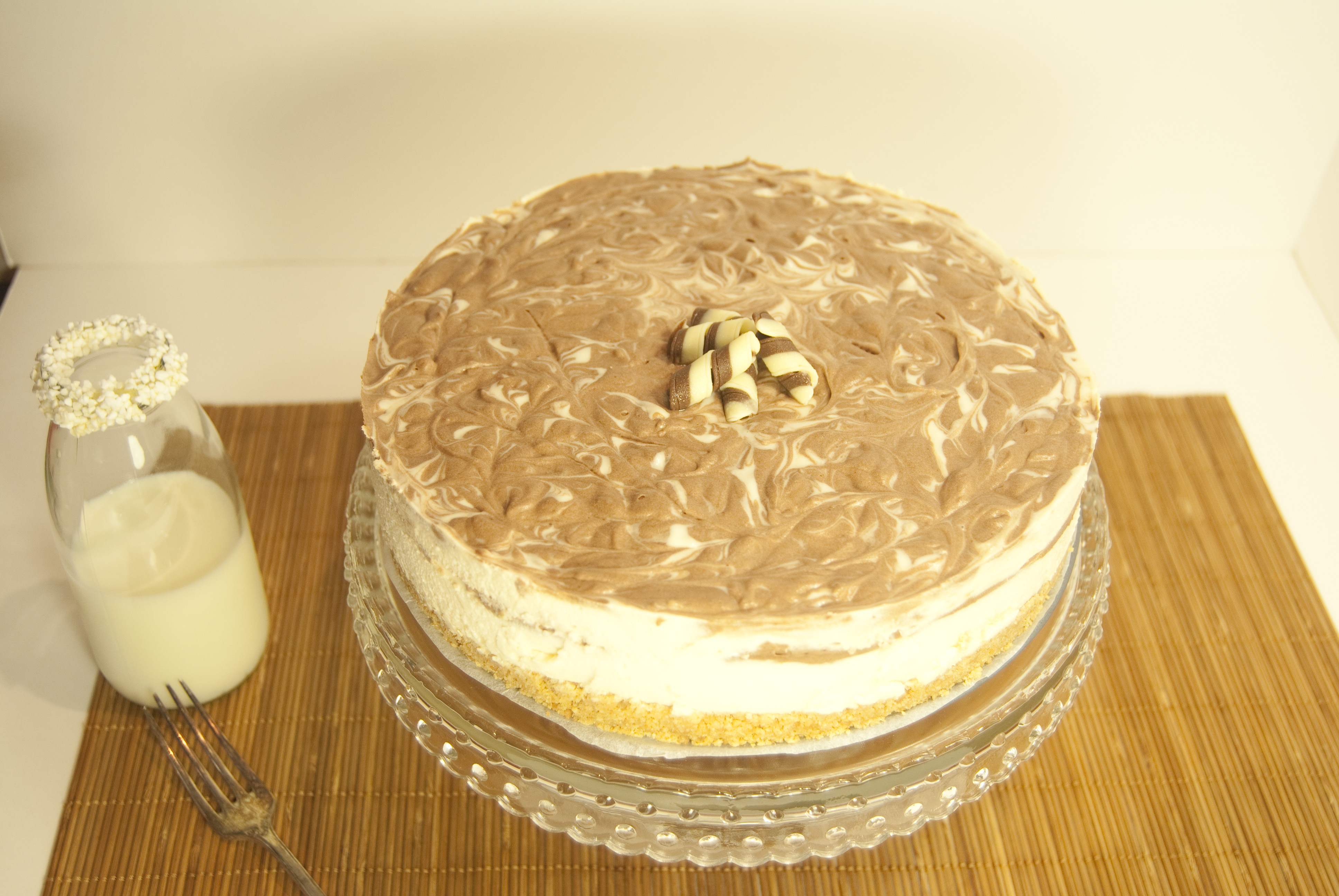 Llega el verano y comienzo a odiar el horno y comienzo a sustituir los bizcochos por cremas frías, helados o parfaits. Además de ser muy fáciles y llevar poco trabajo, suelen quedar muy resultonas. Con muy poco, se puede conseguir una gran proeza y colgarte un par de medallas. Algo así me pasó el sábado. Se celebraba un cumpleaños en casa y no  podía faltar la tarta. No somos amantes del licor, por lo que tenía un botella de baileys que rondaba por casa y antes de que se echara a perder, mejor darle una segunda oportunidad. ¿Se os ocurre algo mejor que convertirlo en tarta? Cuando vi la receta de Kanela y Limón lo tuve muy claro. Debía probarla aunque modifiqué las cantidades, reduciendo hojas de gelatina por más queso crema para que fuera más untuoso, aunque sin perder la esponjosidad que le aporta la nata montada.
